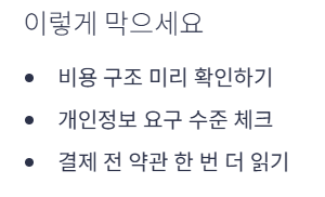 - 개인정보와 정기결제·추가 상담 유도 문구를 한 번 더 확인해, 나중에 해지·환불로 시간·돈을 쓰는 일을 줄입니다.
