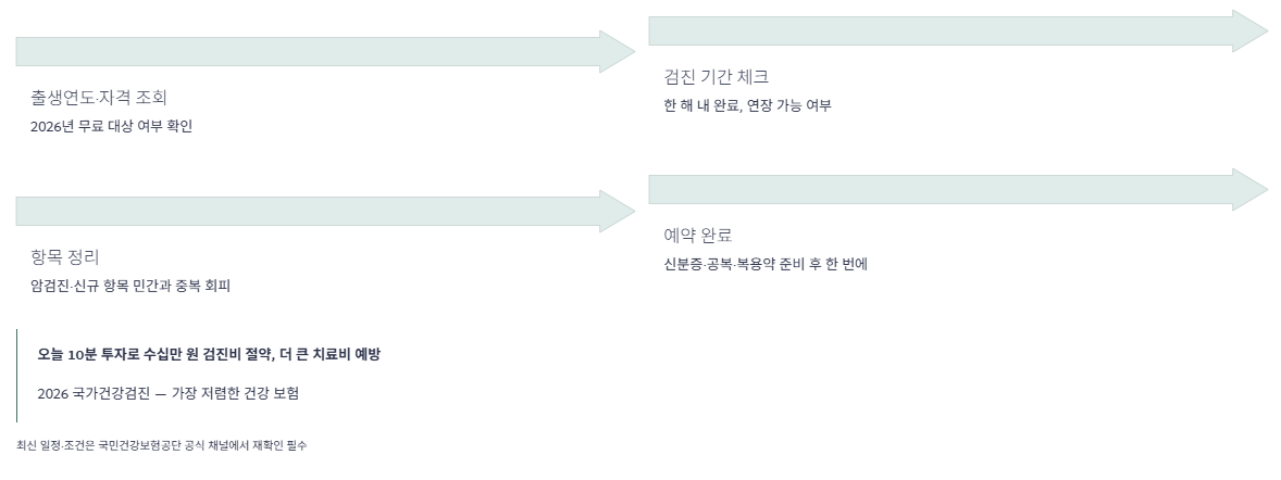 아래 질문들을 미리 체크해 두면, 2026년 국가건강검진을 놓쳐서 무료 검진비와 조기 발견 기회를 함께 잃는 일을 피할 수 있습니다.