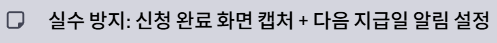 실수 방지 팁: 신청 완료 화면 캡처 1장 + 다음 지급일 알림 1개면 충분합니다.