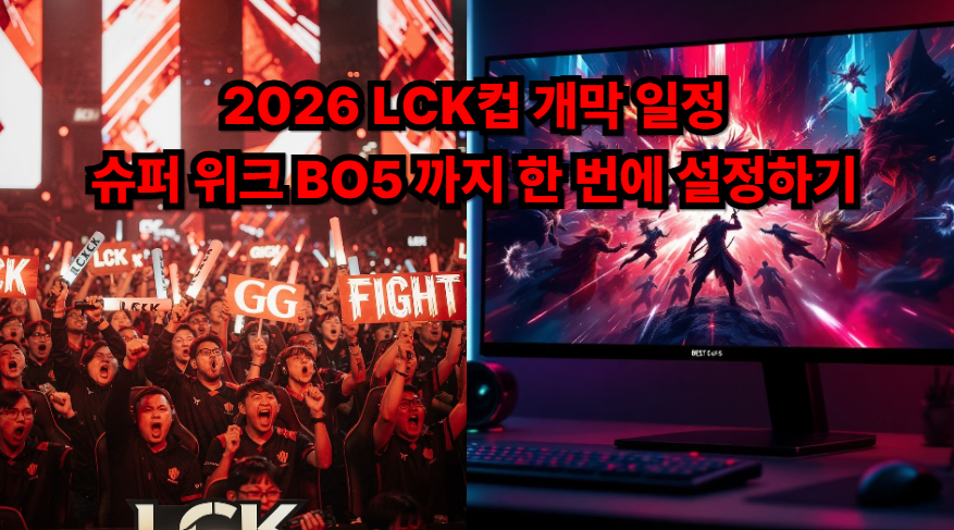 2026 LCK컵은 2026년 1월 14일(수) 오후 5시 개막으로 안내됐습니다. 캘린더에 “개막 + 슈퍼 위크” 2개만 먼저 고정하면 절반은 끝납니다. 이번 대회에서 체감이 가장 큰 숫자는 ‘승점 2점’과 ‘BO5’입니다. 슈퍼 위크를 놓치면, 재밌는 구간을 통째로 놓치기 쉬워요.