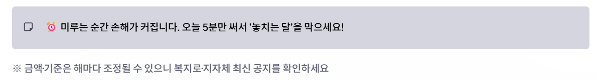 마지막 요약: “가능성 있으면 접수부터”가 정답입니다. 오늘 5분만 써서 ‘놓치는 달’을 막으세요.
