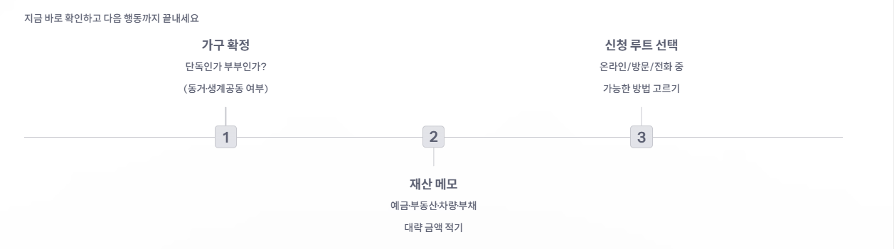 30초 요약: 가구+재산만 정리하면 방향이 보입니다. 5분 실행: 오늘 ‘접수’까지 끝내면 됩니다.