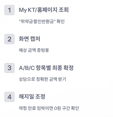“캡처 + 항목별 확정 + 해지일 비교” 이 3개가 KT 해지 위약금 조회의 핵심입니다.